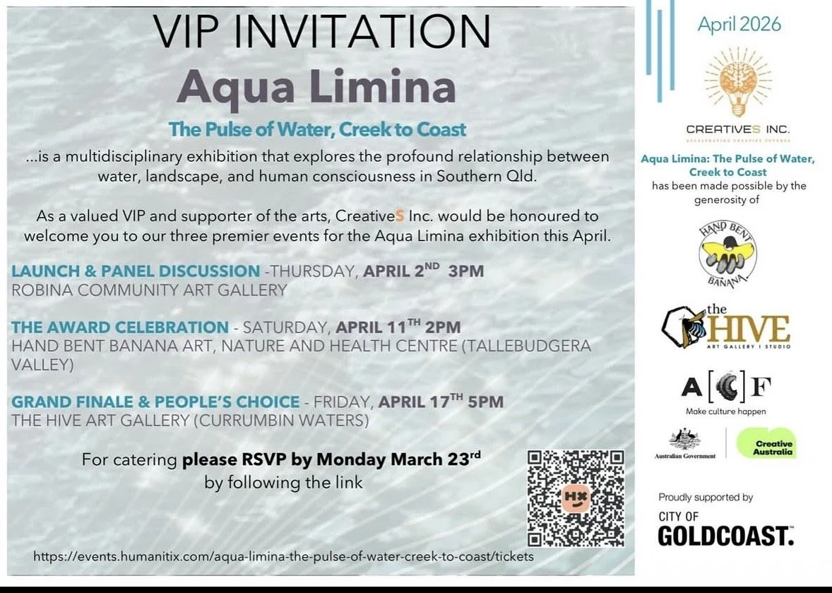 Running from 2–18 April, this multi-venue exhibition unfolds across Robina Gallery, The Hive Art Gallery, and Hand Bent Bananas—creating a connected trail of artistic response along the Gold Coast.